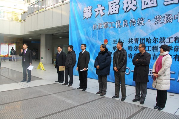 校团委书记史波致开幕词。他指出,大赛为广大同学提供一个展示自己聪明才智和学习交流的平台,激发同学们的创新想象意识,提高动手设计能力,让更多的同学在美的熏陶下锻炼和提高自己的综合素质。他希望通过这次比赛能够继续提高我校在冰雪艺术领域的实力,同时在广大同学当中推广和普及冰雪艺术,让更多的同学投身到冰雪艺术当中来,把雪雕这项非物质文化遗产继承、发扬下去,不仅成为特色品牌,更能够成为一种传承文化。