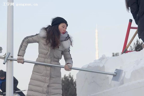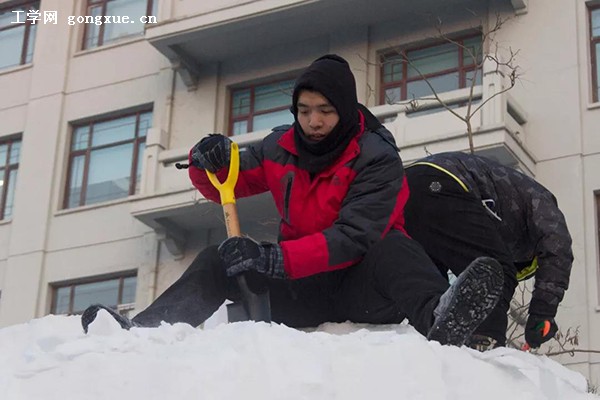 一把冰叉,一条雪铲,在工程校园,人不畏严寒,舞弄冰雪,其乐融融